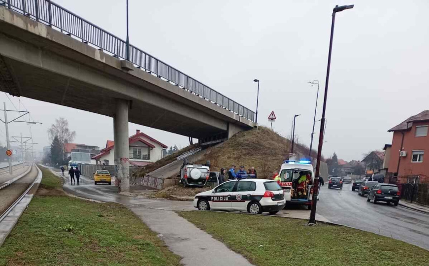 Teža nesreća na Ilidži: Automobil završio na krovu, jedna osoba povrijeđena